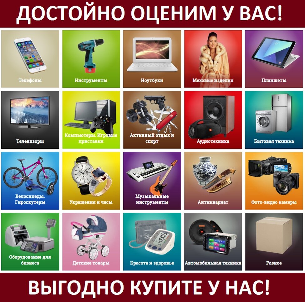 Клиенты могут получить денежные средства, оставив в залог ювелирные украшения, золотые изделия, драгоценные камни, антиквариат, монеты, электронные устройства, бытовую технику, оргтехнику, меха, фарфор, иконы, статуэтки, значки, марки, картины и даже недвижимость. Оценка залоговых вещей проводится бесплатно и в кратчайшие сроки.
