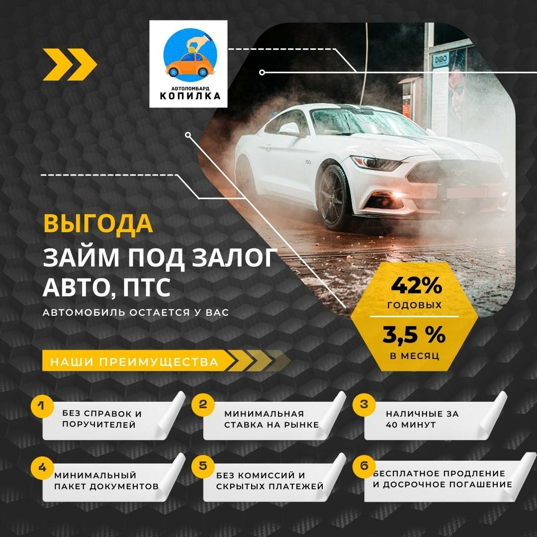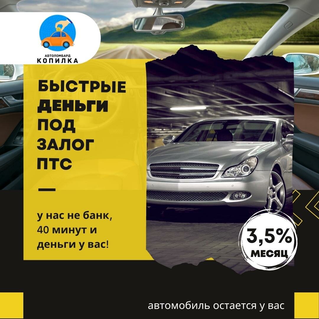 Займ под залог авто и ПТС. 3,5% в месяц или 42% годовых. без справок и комиссий. На автомобиле заемщик сможет передвигаться в течении всего периода займа.