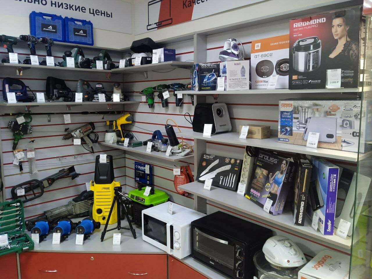 Вечно занят продавец… оценкой. Хотел купить перфоратор, но купил у мужчины в очереди (….дешевеле чем там на ветрине
