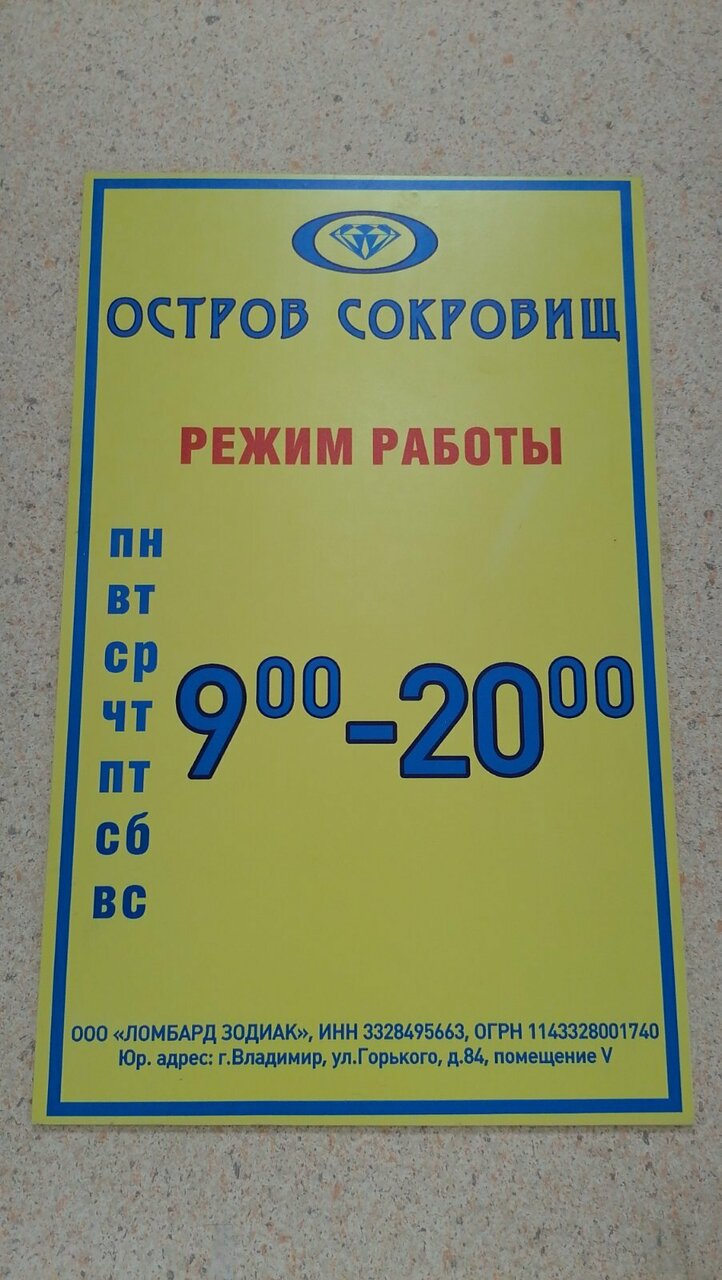 Информация о ломбарде Остров сокровищ актуализирована в октябре 2025 года: