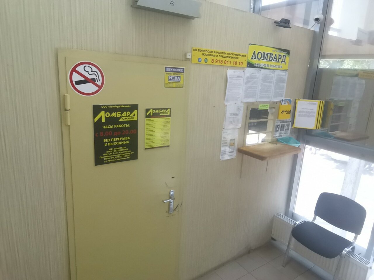Дополнительные услуги включают страхование залога, выдачу краткосрочных займов и оплату наличными. Ломбард работает ежедневно с 08:00 до 20:00. Для связи доступны телефоны: +7 (918) 011-10-10 и +7 (909) 455-55-86.
