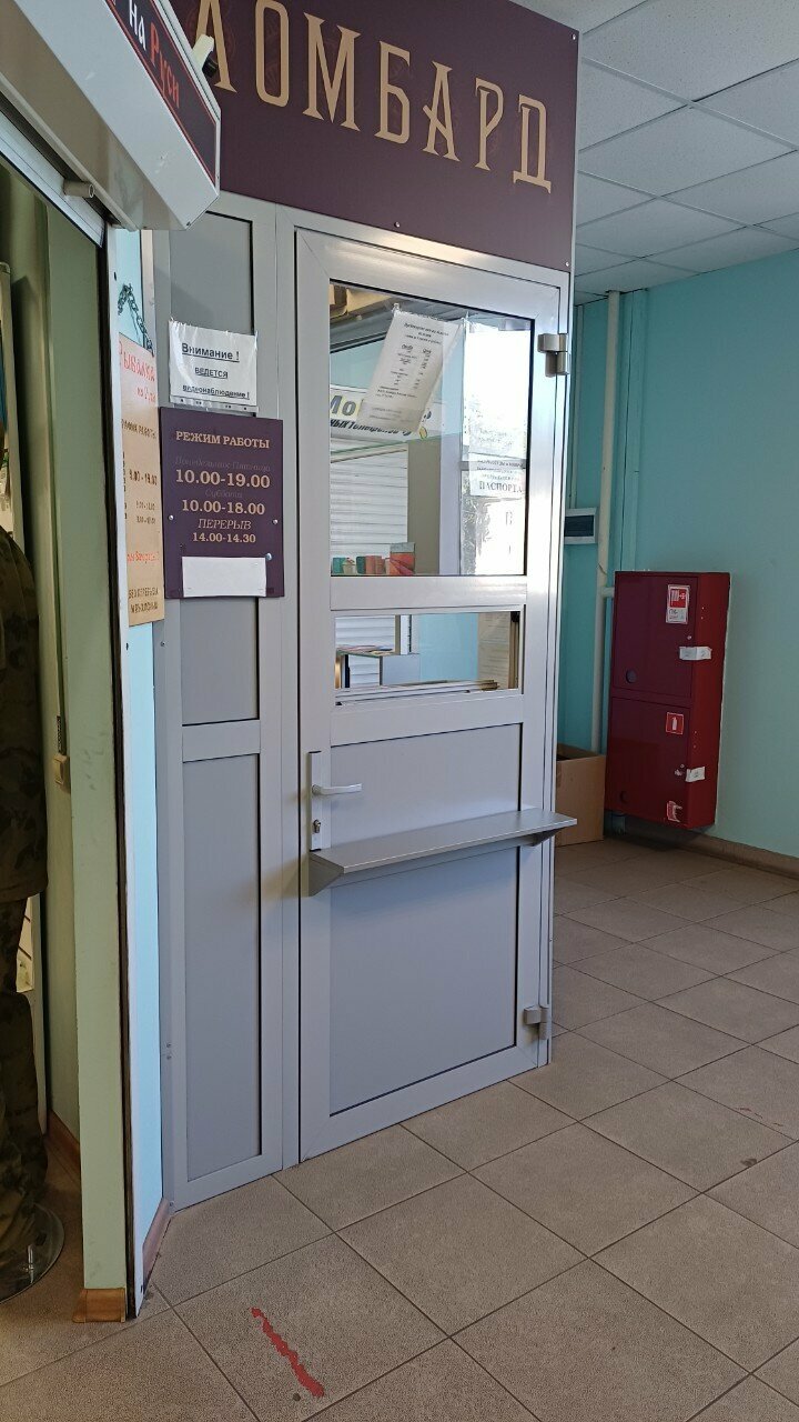Ломбард находится по адресу: улица З. Космодемьянской, 2Б, этаж 2. Режим работы: с понедельника по пятницу с 10:00 до 19:00 (перерыв с 14:00 до 14:30), в субботу с 10:00 до 18:00 (перерыв с 14:00 до 14:30). Для связи доступны телефоны: +7 (920) 249-14-48, +7 (920) 516-14-48, +7 (4742) 27-54-58.
