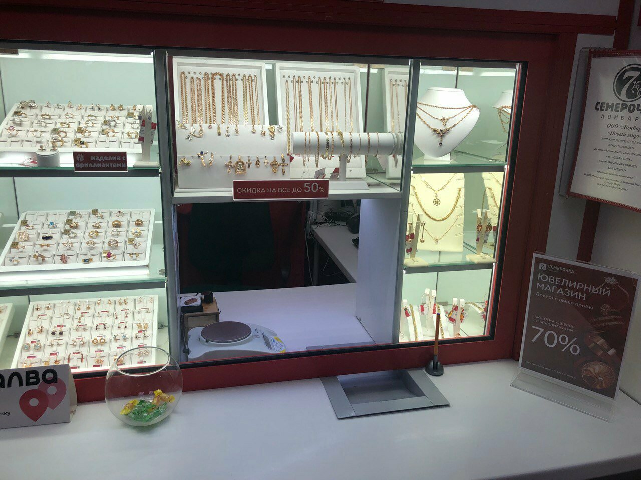 Была в ломбарде Семерочка, мне нужно было купить цепь, цены намного ниже чем в магазине. Надежда помогла мне с выбором под мой бюджет, там оказывается есть рассрочка на 3 месяца! Рекомендую этот ломбард цены, обслуживание на высоте!Также брала ранее браслет, осталась довольна, поэтому пришла вновь за цепью. Молодцы.