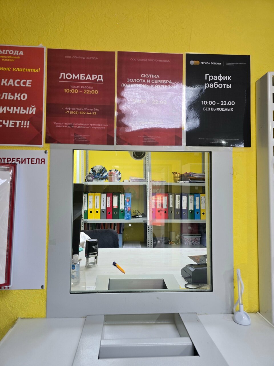 Ломбард работает ежедневно с 08:00 до 23:00, что позволяет клиентам удобно подобрать время для посещения. Для связи доступен телефон: +7 (908) 897-69-91. Дополнительные услуги организации включают выкуп золота и других ценностей. Подробнее о деятельности ломбарда можно узнать на официальном сайте: https://yugansk.region-zoloto.ru/skupka.
