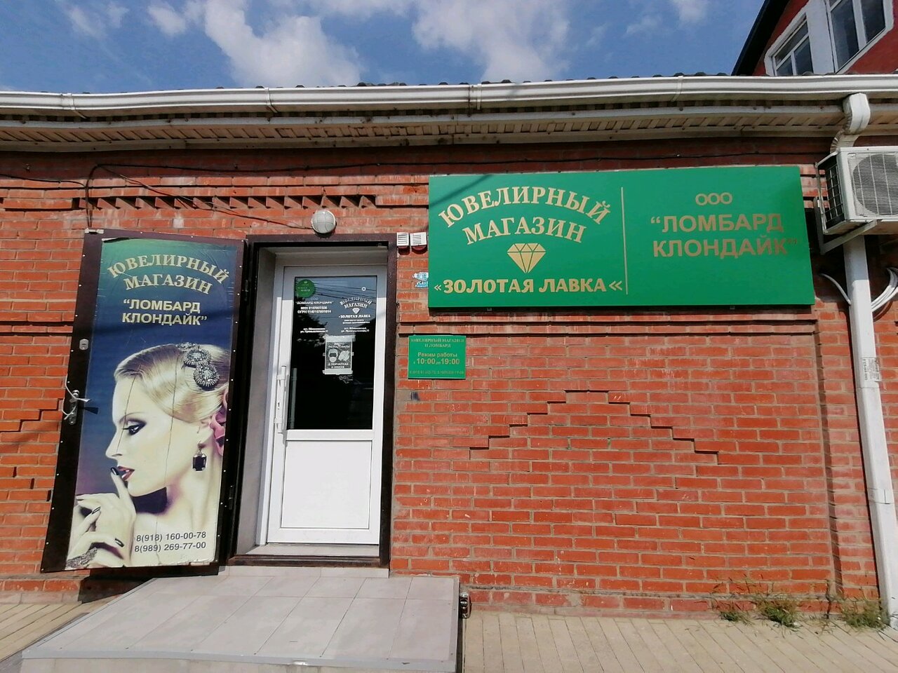 Ломбард работает с понедельника по пятницу с 10:00 до 19:00, в субботу и воскресенье — с 10:00 до 18:00. Для связи доступны телефоны: +7 (989) 269-77-00, +7 (918) 160-00-78, +7 (87771) 9-72-88.