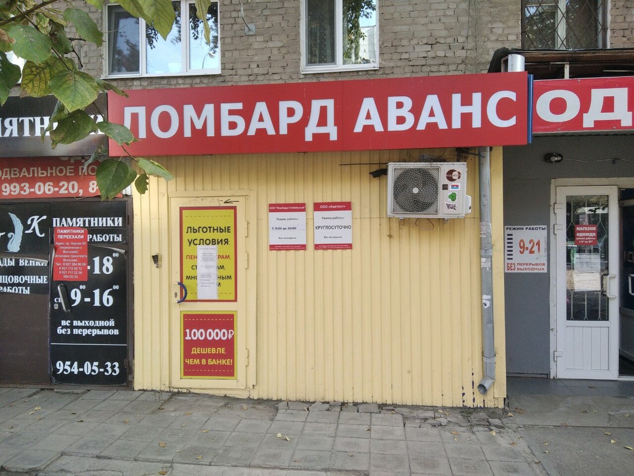 Кроме выдачи займов под залог, ломбард «Аванс» предоставляет услуги краткосрочного кредитования. Для связи доступны телефоны: +7 (927) 712-88-50 и +7 (987) 443-25-67.