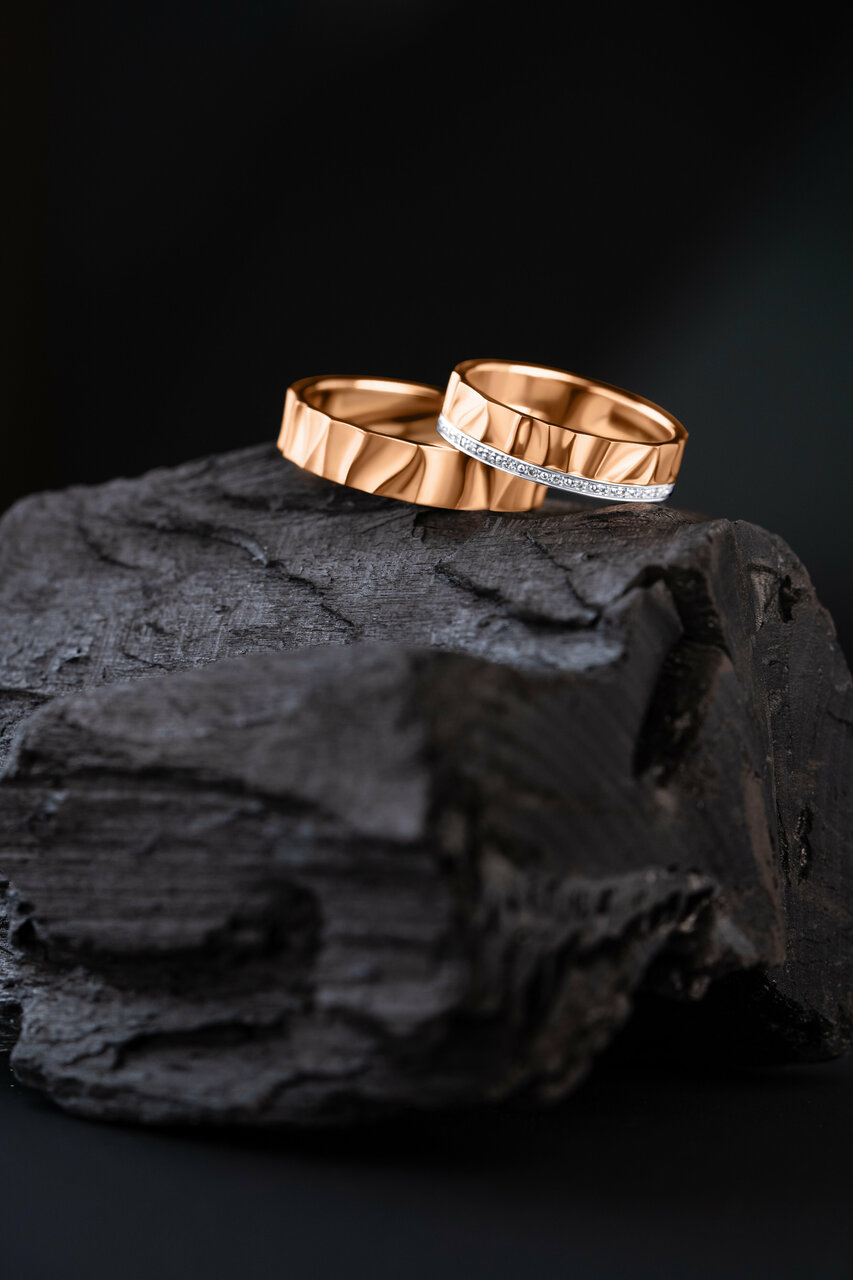 - 911859ЧБ Дива Широкое кольцо из красного золота с черными бриллиантами 911859ЧБ