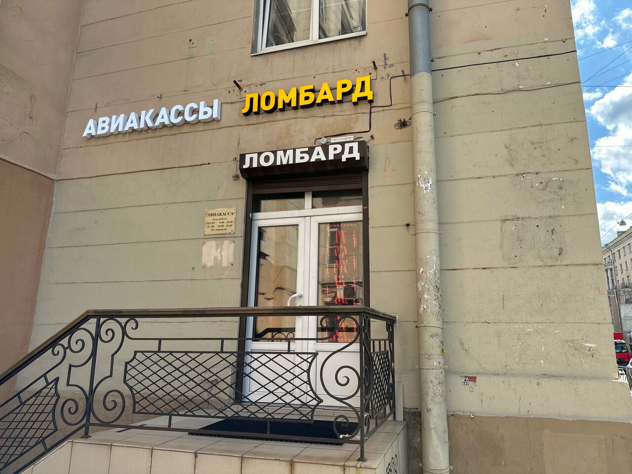 Ломбард работает с понедельника по пятницу с 10:00 до 20:00, в субботу и воскресенье — с 10:00 до 19:00. Для связи доступны телефоны: +7 (921) 435-04-02 и +7 (929) 188-40-48.