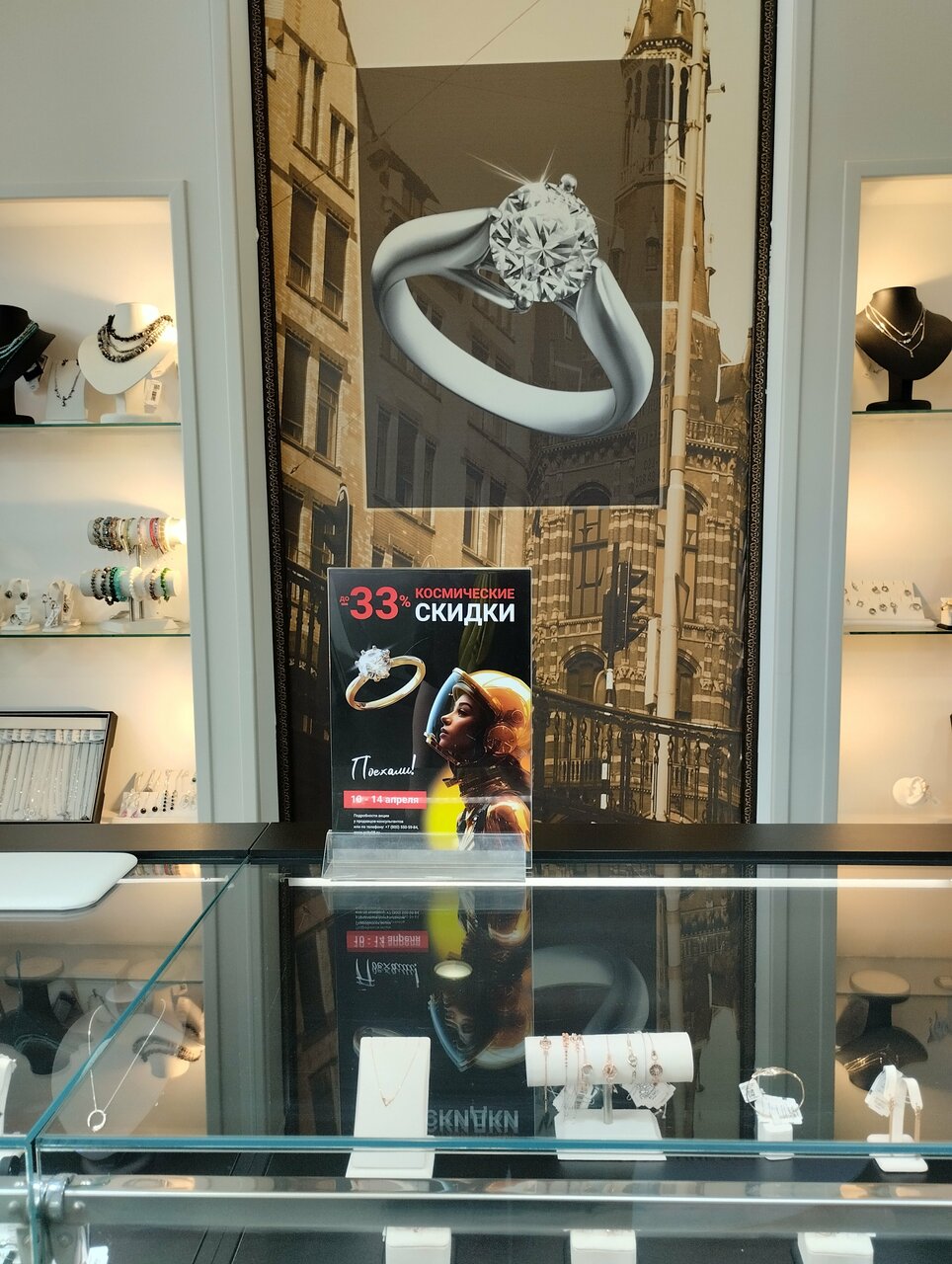Прекрасный магазин. Отзывчивый и грамотный продавец Ирина. Помогла в выборе кольца.
