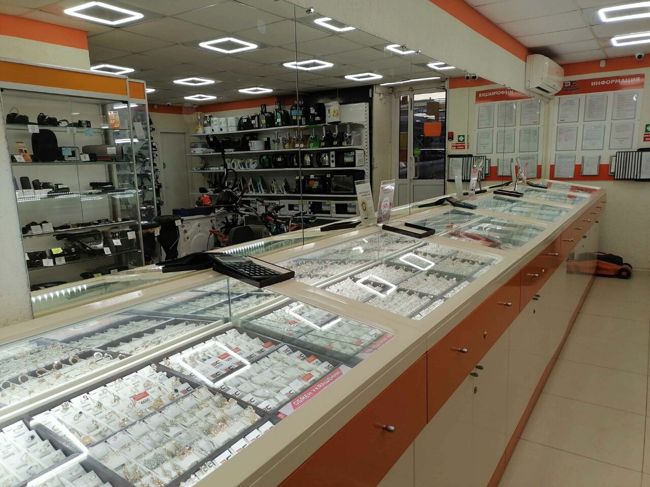 - Хороший ассортимент техники и ювелирных изделий.